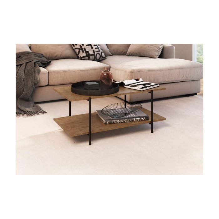 Mesa de Centro 90cm 2 Prateleiras Estrutura Metálica 27870 Tube Artesano - Vermont/preto Fosco