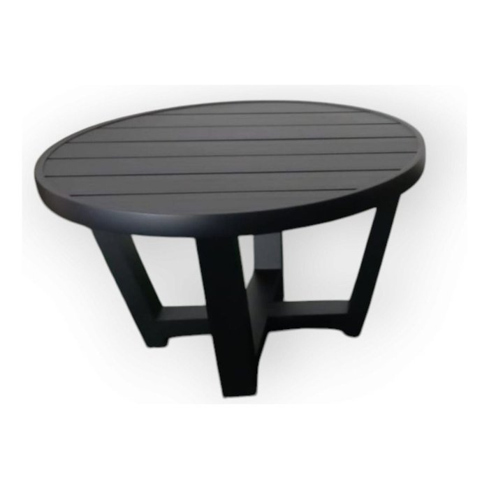 Mesa de Centro Alumínio Ripado Redonda Varanda Piscina 70cm Preto