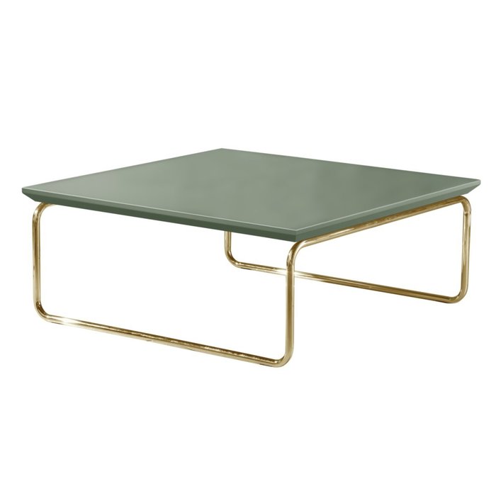 Mesa de Centro Astral 70x70 Cm Base Aço Tubo Ouro - Bordinhon: Verde Lazza