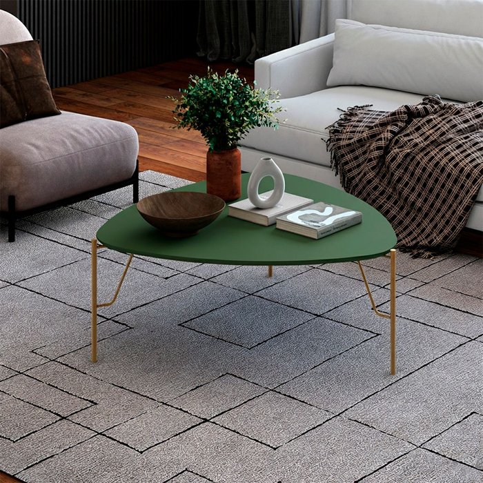 Mesa de Centro Baixa L89 X A31cm Mdf Musgo/Dourado