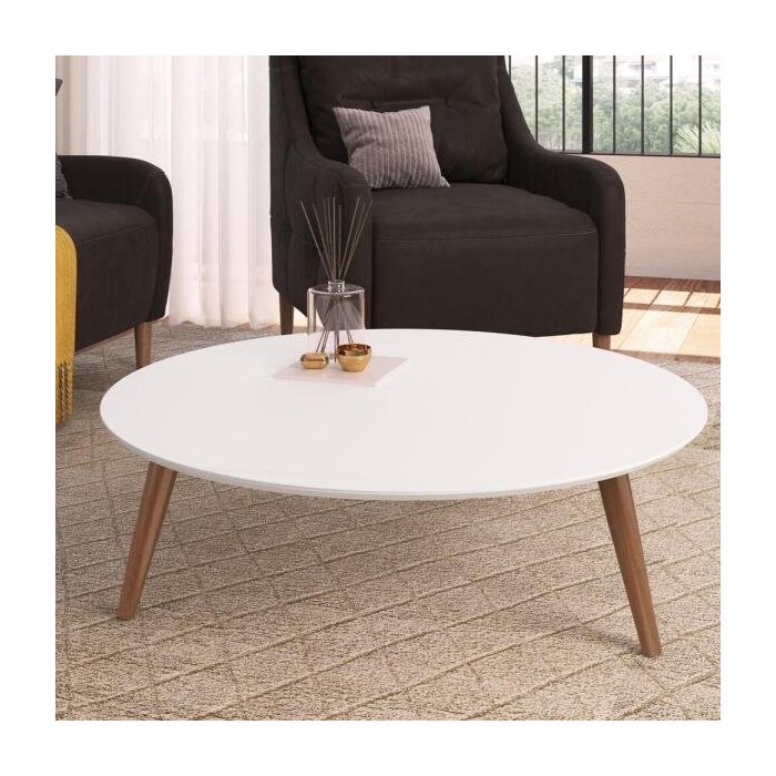 Mesa de Centro Baixa Redonda Mesinha Mdf Pé Palito Branca