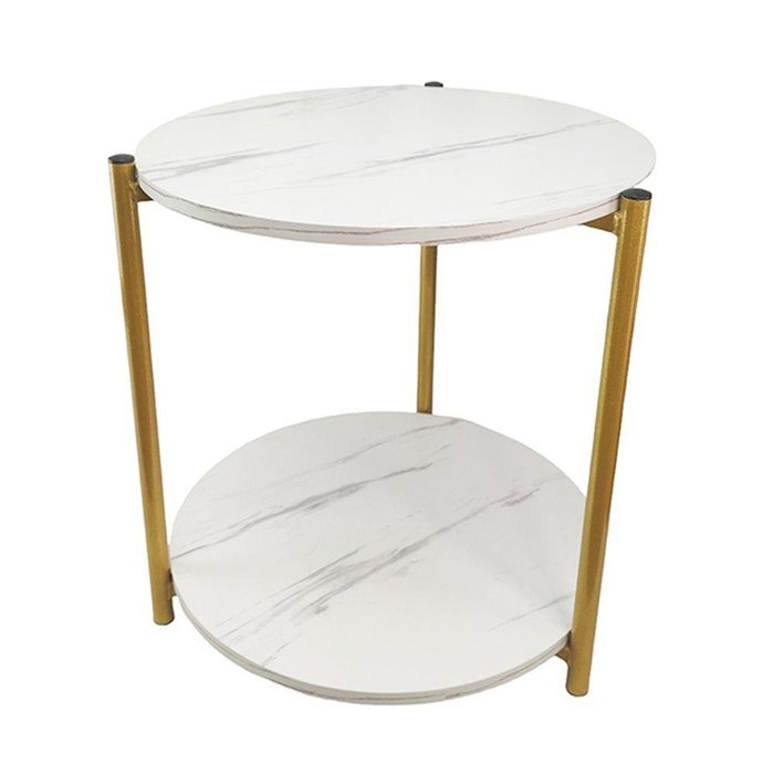 Cor: Branco e DouradoDimensoes Aproximadas:Altura: 43cmLargura/Diamentro das duas prateleiras redondas: 40cmCircunferencia das duas prateleiras redondas: 126cmEspessura: 1cm Conteundo da embalagem:01 mesa de canto