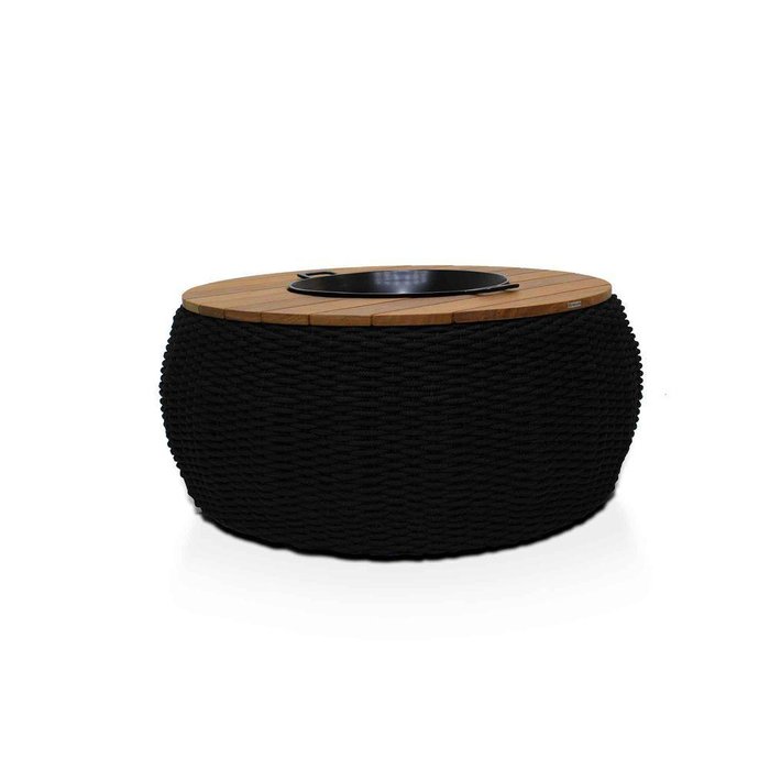 Mesa de Centro com Champanheira Tramada em Corda Náutica e Tampo em Madeira Ripada