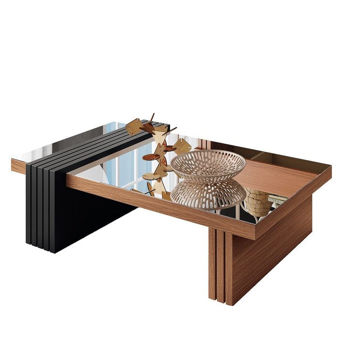 Mesa de Centro com Espelho para Sala de Estar 107cm Luna Nature/Preto - HB Móveis