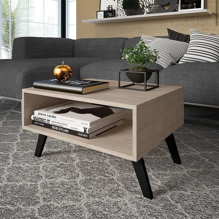 Mesa de Centro com Nicho e Pés Retrô para Sala Marrom