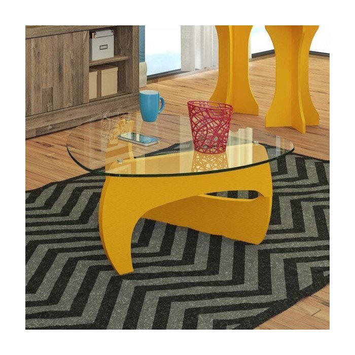 Mesa de Centro com Tampo de Vidro Cult Artely Amarelo