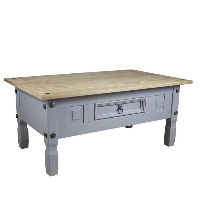 Mesa de Centro em Madeira de Pinus em Cera Cinza Cinza