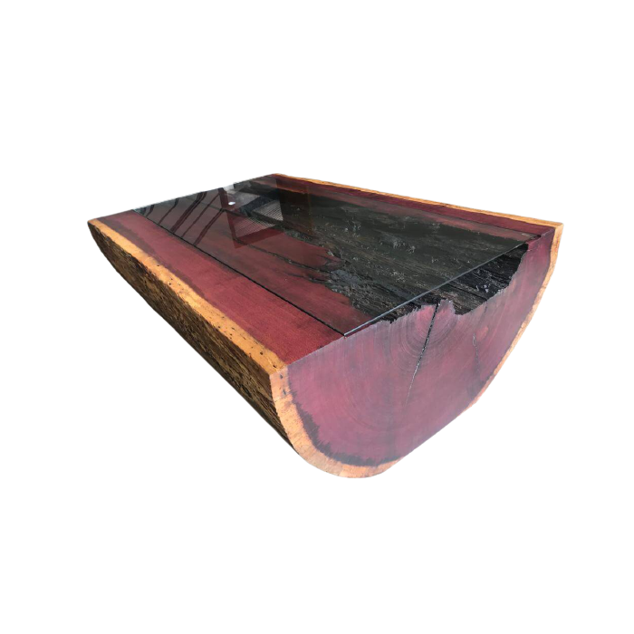 Mesa de Centro em Madeira Natural Roxinho com Tampo de Vidro