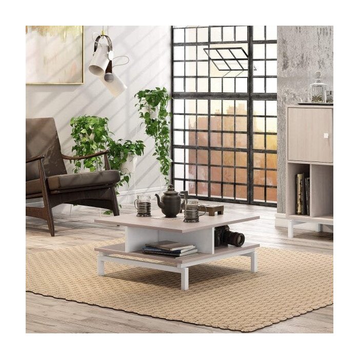 Mesa de Centro em MDP Xadrez Bortolini Móveis Carvalho Berlim/Branco