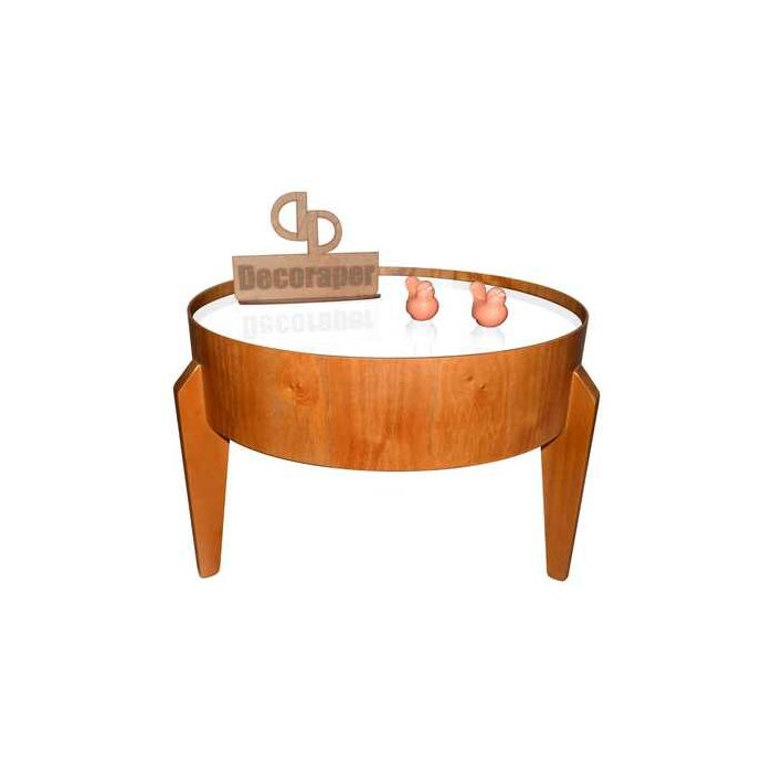 Mesa de Centro Esmeralda Redonda Laminada com Vidro 50cm - Branca