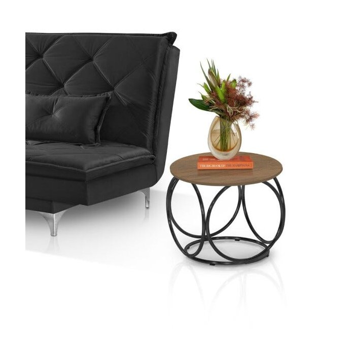 Mesa De Centro Ibiza Base ferro preto estilo industrial Lorena Móveis