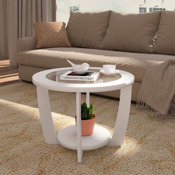 Mesa de Centro Lola Tampo de Vidro Temperado Branco Spazio Móveis