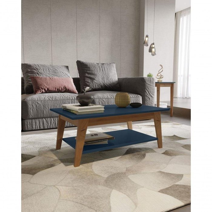 Mesa De Centro Madeira Maciça Veneza Azul Petróleo