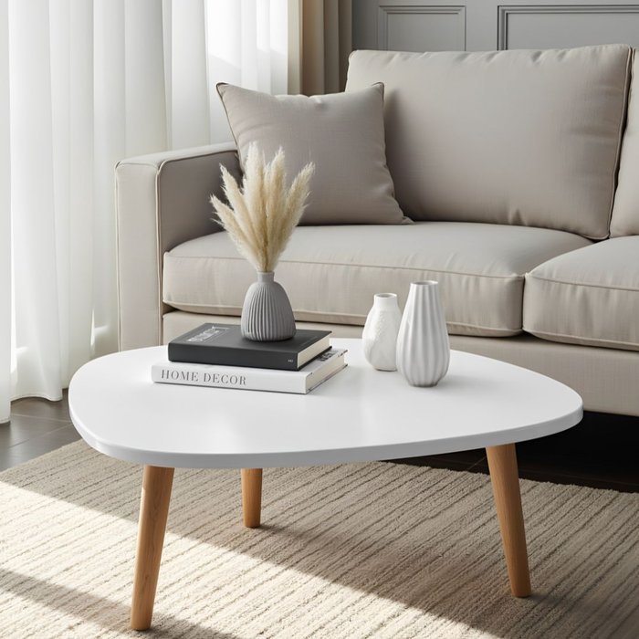 Mesa de Centro Orgânica Moderna para Sala Pés Madeira Branco