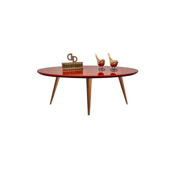 Mesa De Centro Oval + 2 Mesas De Canto Tripé Tampo Vermelha Vermelho