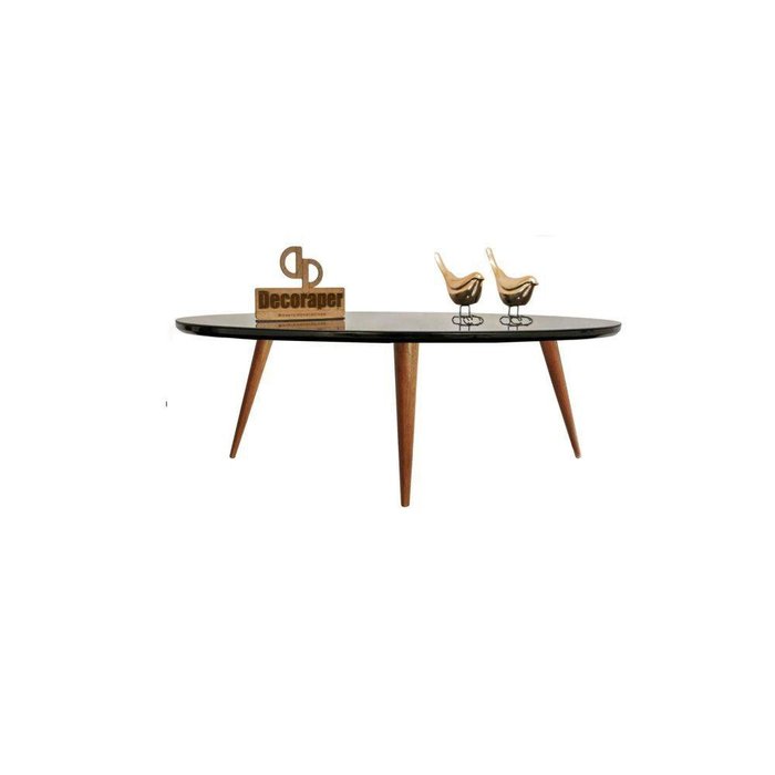 Mesa De Centro Oval Laqueada Com Vidro Colado Pé Palito 80x50 Cor Do Tampo Preta Cor Dos Pés Amadeirado
