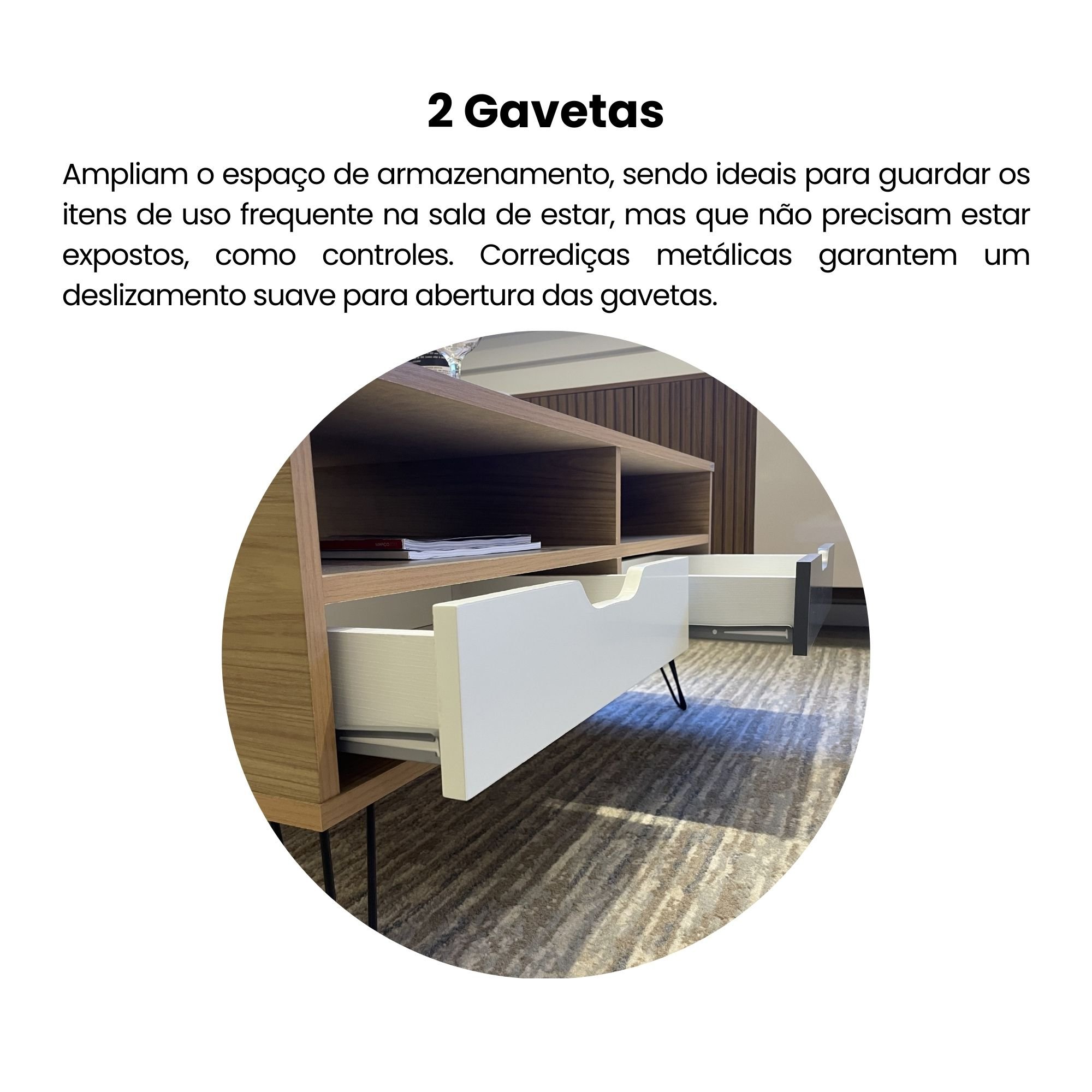 Duas Gavetas com Abertura Usinada: Detalhes que encantam e organizam o ambiente.
