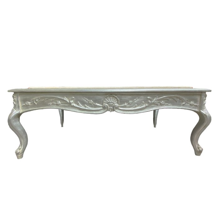 Mesa de Centro Prateado com Tampo de Mármore - 43x120x62cm