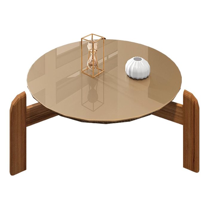 Mesa de Centro Redonda Akemi Champagne e Cedro - D'Rossi