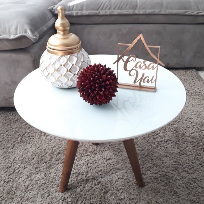 Mesa de Centro Redonda com Vidro 50cm Casa Uai Branco