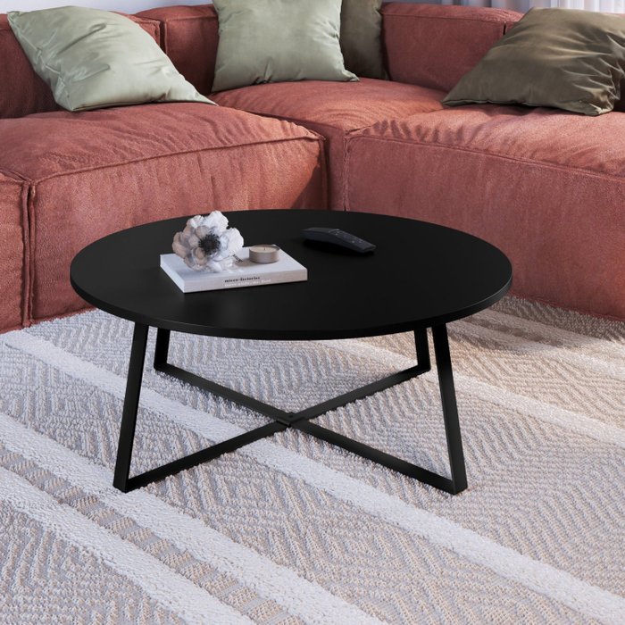 Mesa de Centro Redonda Industrial Complementos Preto/Preto