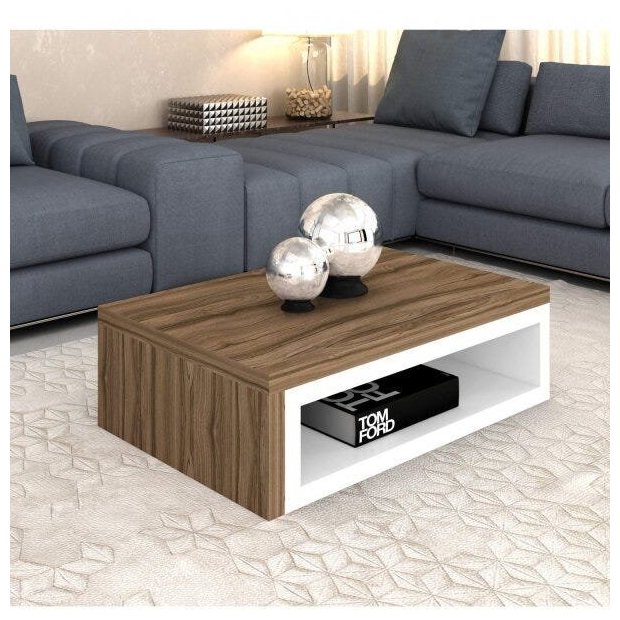 Mesa de Centro Retangular em MDF Sicília Espresso Móveis Madeirado Escuro/Branco