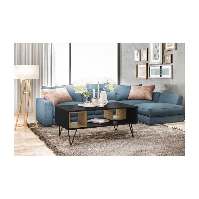 Mesa de Centro Retrô Metal Dallas Preta/mel Freijo Ac