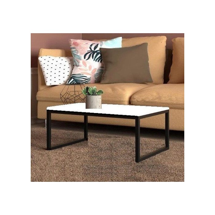 Mesa de Centro Sala Retangular Ferro e Madeira Industrial - Branco Branco