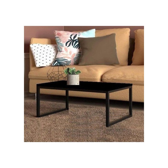 Mesa de Centro Sala Retangular Ferro e Madeira Industrial - Preto Preto