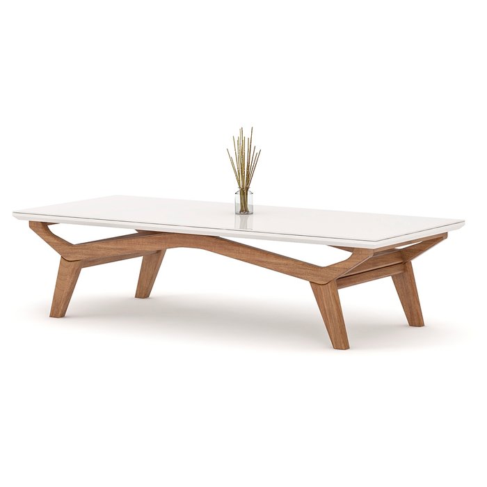 A mesa de centro San Marino é fabricada em madeira de eucalipto com tampo em MDF laqueado e vidro pintado e colado sobre o tampo.