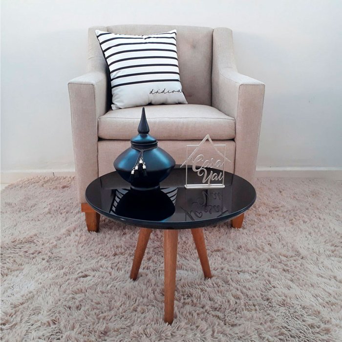 Mesa de Centro Tampo com Vidro 35x50cm Pés Palito Casa Uai Preto