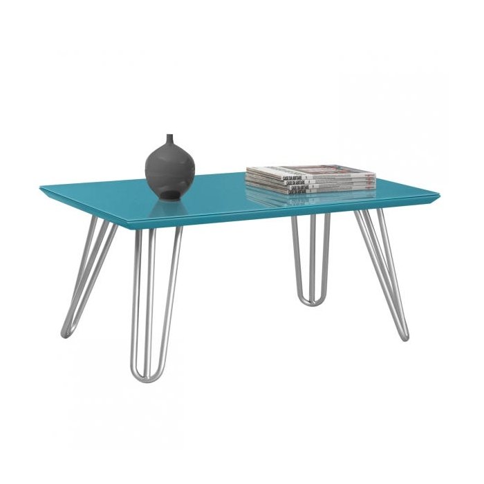 Mesa de Centro Turquesa Pés Prateados Neew House Azul Turquesa