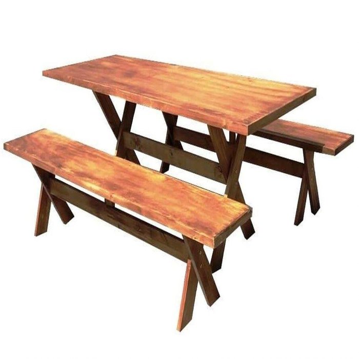 Mesa De Churrasco 2,25m Com 2 Bancos De Madeira Maciça Móveis Rústicos Adelin