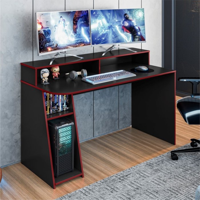 Mesa de Computador Gamer Kenzy Preto Vermelho