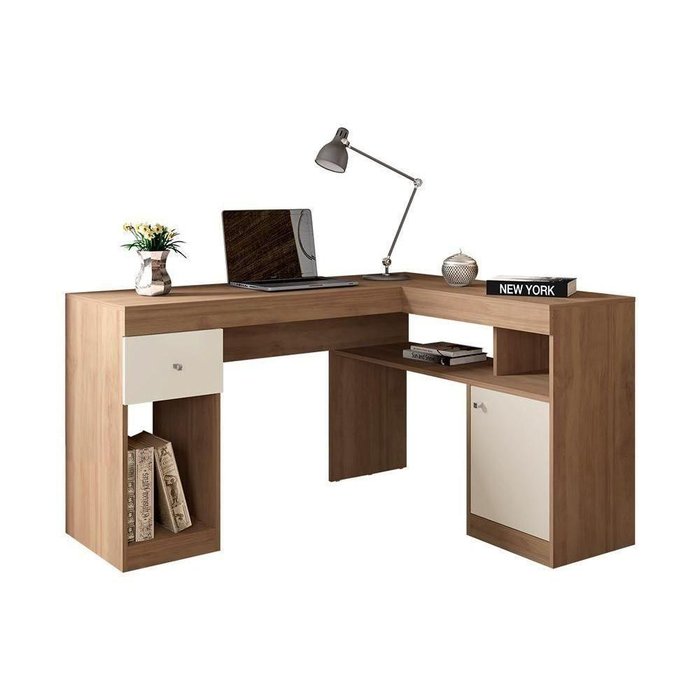 Mesa de Computador Nilo C/ 1 Porta e 1 Gaveta Buriti/off White - Caemmun Buriti/Off White