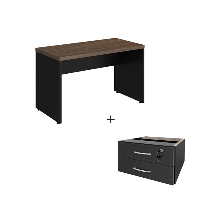Mesa de Escritório com Gavetas 1,50×0,60m – WORDSTAR – NOGAL MÁLAGA/PRETO