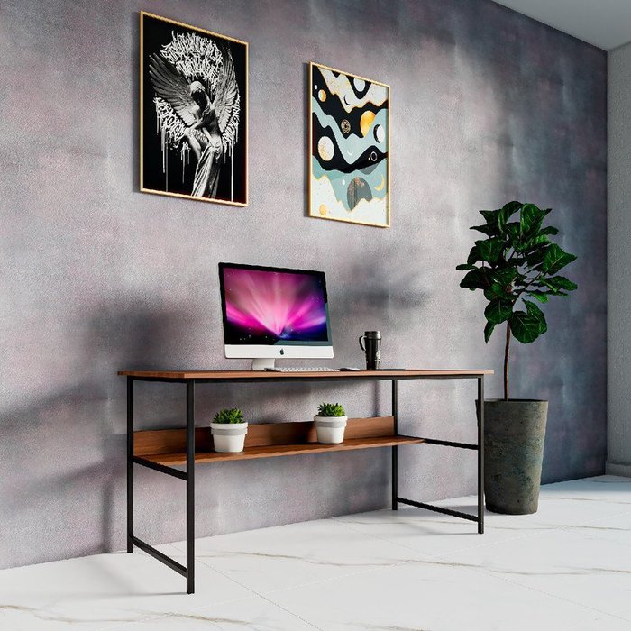 Mesa de Escritorio e Quarto Gamer Estilo Industrial Home Office Rhombus 150x70x75 Cor Mdf Castanho