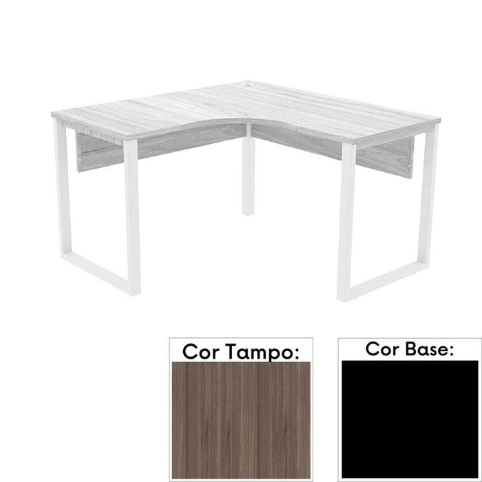 Mesa de Escritório em L Pé Tubular Pe25 em MDP 145 x 145 x 60cm Cor Walnut e Base Preta