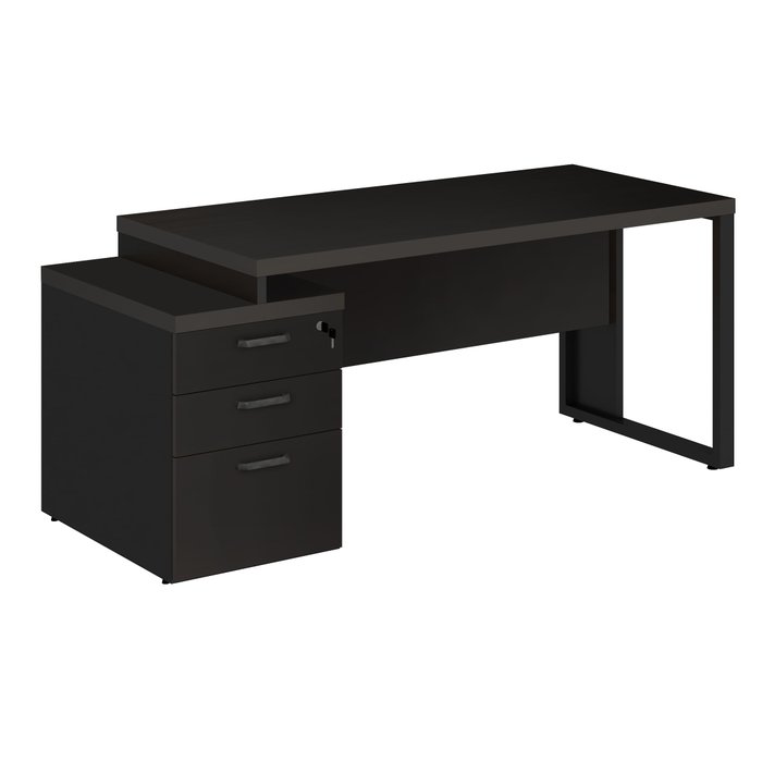 Mesa de Escritório Executiva Diretor Dinâmica Pé Quadro com Gaveteiro Pedestal de 3 Gavetas - Euro C Preto