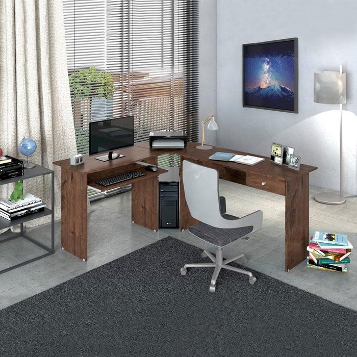 Dimensões do Produto: Largura 1,72m; Altura 0,74m; Profundidade 1,41m.Itens Inclusos: 1 Estação de TrabalhoTipo: EscrivaninhaAmbiente: Quarto e EscritórioCor Predominante: TabacoEscala de Brilho: BrilhoCor: TabacoPossui Gavetas: 01Material das Gavetas: MDF/MDPPossui Pés: NãoSapatas Niveladoras: SimMaterial Principal: MDF/MDPNecessita Montagem: SimPeso Máximo por Gaveta: 3 kgTipo de Puxador: ExternoTipo de Corrediça: MetálicaAcompanha Manual de Montagem: SimSistema de Montagem: Parafusos e CavilhasComplexidade da montagem: Média, pode ser montado por apenas uma pessoa e/ou necessite de maior conhecimento para montagem.Recomendações de uso, manutenção e limpeza: Limpar com flanela ou pano macio seco, não utilizar produtos abrasivos, desengordurantes, álcool ou solvente. Não expor o produto diretamente a luz solar e à umidadeGarantia: 3 mesesOBS: Foto meramente ilustrativa, objetos e decoração não fazem parte do produto.Um verdadeiro escritório em um só produto, composto de duas mesas mais um canto. Pode ser montado de várias composições, esquerda, direita ou em linha. Possui uma mesa com gaveta tipo escrivaninha e uma mesa com porta teclado. Tem acabamento na parte frontal, o que permite ser usado para atendimento.
