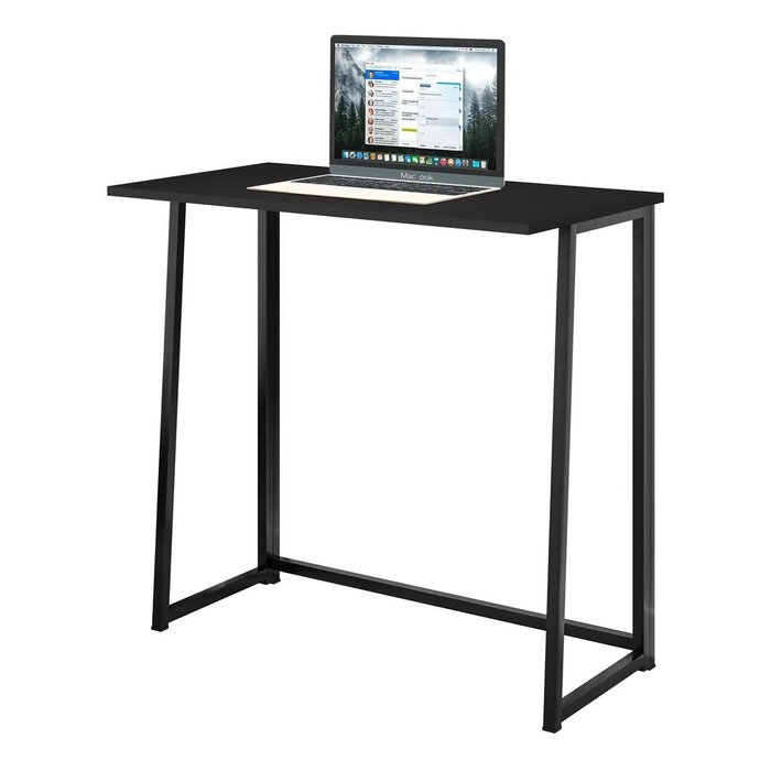 Tampo da mesa na cor preta, produzido com chapas de madeira com revestimento laminado plástico prensado, permitindo maior resistência a umidade.