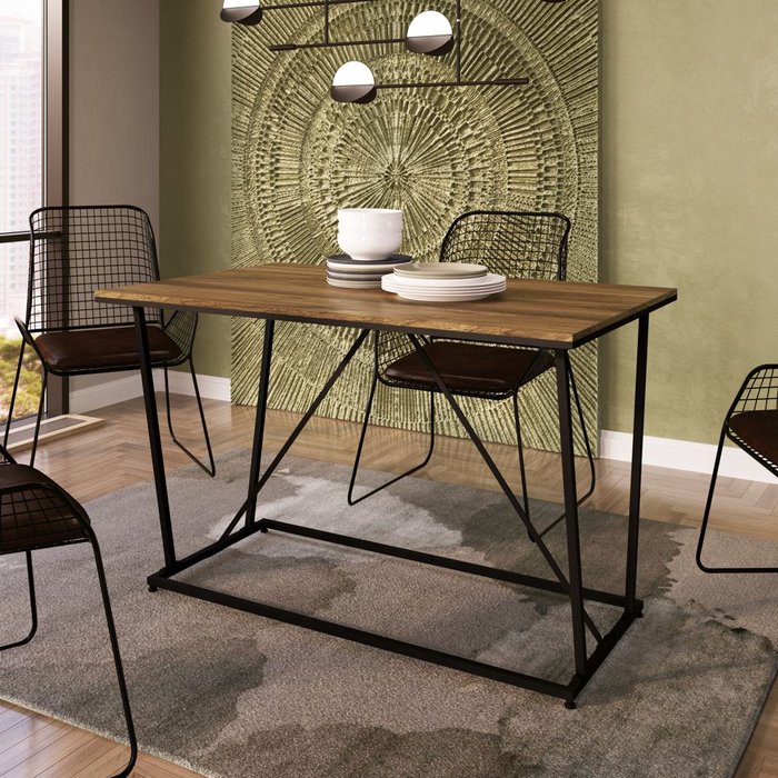 Se você procura um ambiente moderno e aconchegante, nada melhor que a Mesa de Jantar Placa e Ponto. Com design único, perfeito para ser o centro das atenções da decoração da sua casa. Possui estrutura em tubo metálico e reforço para garantir estabilidade do móvel, além do tampo amadeirado que garante sofisticação e harmonização fácil com o resto do mobiliário.