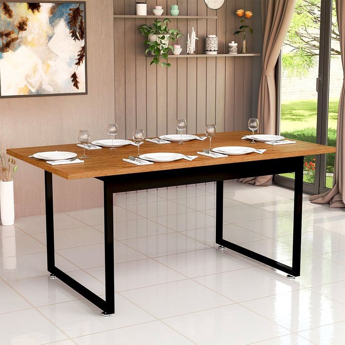Design industrial moderno e sofisticado Estrutura firme com pés de ferro reforçado Capacidade para até 6 pessoas Ideal para salas de jantar, cozinhas e áreas gourmet Versátil, podendo ser usada até como mesa de reuniões