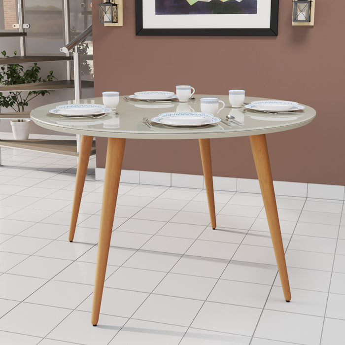 Mesa de Jantar 4 Lugares em Mdf com Pés Palito e Tampo de Vidro Off White