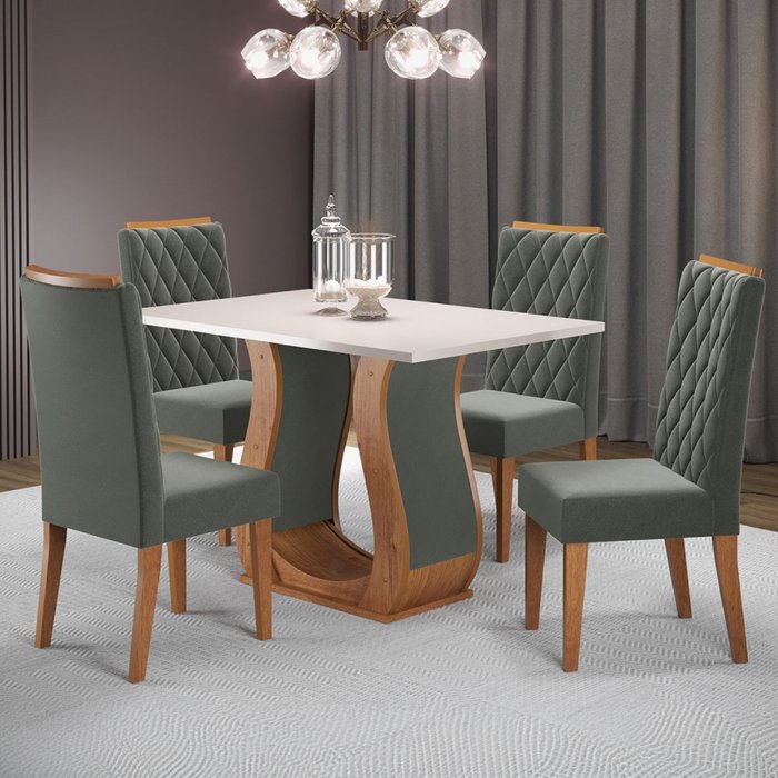 Descrição:O(a) Mesa de Jantar 4 Lugares Los Angeles Mel/Blonde/Griss - Viero Móveis é produzido em MDF e MDP na escala de brilho Semi-Brilho, e possui um grau de dificuldade de montagem: Médio.Seu revestimento/acabamento é: Pintura UV e Veludo.Infelizmente a Loja não oferece serviço de montagem, deixamos essa informação bem clara em todas as nossas páginas de produto.Onde especificamos que os móveis chegarão desmontados, e que a montagem fica por conta do cliente.Como não oferecemos esse serviço não embutimos o mesmo no preço dos produtos, ou seja, maior economia para você!Todos os nossos móveis também acompanham o manual de montagem, e caso você queira, pode realizar a montagem você mesmo, sempre especificamos os graus de montagem dos produtos.Nos casos de grau baixo e médio, com pouco ou nenhum conhecimento, você mesmo pode efetuar a montagem, e fazer essa economia.Apenas nos graus de montagem alto, recomendamos a contratação de um montador com experiência, visto que são montagens mais complicadas. A montagem é feita com Parafusos, cavilhas e Minifix.. Este móvel é indicado para que seja utilizado no(a) Sala de Jantar, dando um toque especial no cômodo de sua casa. Para que você mantenha seu produto sempre em ótimo estado, recomendamos que use apenas um pano seco ou levemente umedecido, sem o uso de quaisquer produtos abrasivos.A Loja garante aos clientes, 90 dias de garantia nos produtos, porém, recomendamos que entre em contato com o fornecedor/marca do produto, pois o mesmo(a), pode garantir um prazo maior de garantia.Lembrando ainda que: quaisquer objetos decorativos que aparecem nas imagens, não acompanham o produto. !Características:- Material da Estrutura: MDF e MDP- Como os Móveis Chegarão na Minha Casa: Desmontado em caixas, acompanhado de todas as peças, ferragens e manuais para montagem.- Grau de Dificuldade da Montagem: Médio- Sistema de Montagem: Parafusos, cavilhas e Minifix.- Observação: Objetos decorativos que aparecem nas imagens, não acompanham o produto.- Recomendação de Manutenção: Utilizar pano levemente umedecido, seguido de pano seco. Não utilizar quaisquer produtos abrasivos.- Indicação de Uso: Sala de Jantar- Garantia (dias): 90- Densidade do Assento: D-20- Densidade do Encosto: D-12- Peso Suportado: 90 Kg- Peso Suportado no Tampo: 50 Kg- Enchimento do Assento: Espuma- Escala de Brilho: Semi-Brilho- Medidas da Cadeira ( A x L x P ): 98 x 42 x 48 Cm- Quantidade de Pés/Sapatas: 16- Enchimento do Encosto: Espuma- Formato da Mesa: Retangular- Tecido: Veludo- Material do Tampo: MDP- Quantidade de Lugares: 4- Revestimento /Acabamento: Pintura UV e Veludo- Possui Pés?: Sim- Linha ou Coleção: Los Angeles- Quantidade de cadeiras por conjunto: 4- Acompanha Cadeiras: Sim- Possui Rodízios?: Não- Espessura da Estrutura: 25mm- Montagem Invertida?: Não Pode ser Montado Invertido- Acompanha: Mesa + 4 Cadeiras + kit ferragem + manual de montagem- Acompanha Tampo: Sim- Possui Sapatas?: Não- Cadeira Estofada: Sim- Possui Espelho?: Não- Possui Vidro?: Não- Possui Gavetas?: Não- Possui Portas?: Não- Possui Prateleiras?: Não- Possui Puxadores?: Não- Material dos Pés: MDF- Acompanha Manual de Montagem: Sim- Necessita de Montagem: Sim- Pés com regulagem de altura?: Não- É frágil?: Não- Possui Ripamento?: Não- Possui Nicho?: NãoDimensões:- Altura: 79,40 cm- Largura: 120,00 cm- Profundidade: 80,00 cm- Peso: 63,350 kg