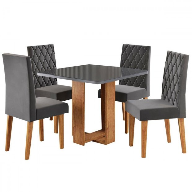 Mesa de Jantar 4 Lugares Magiore Mel/cinza/veludo Cinza - Viero Móveis Cinza