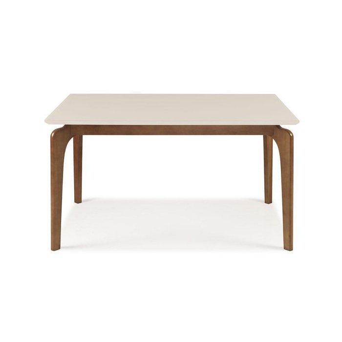 Mesa de Jantar 6 Lugares 160cm Cirrus Tampo com Vidro e Base Madeira Maciça - Off White/Imbuia