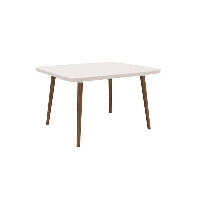Mesa de Jantar Ágata Pés Palito 4 Lugares Off White com Vidro - Rv Móveis