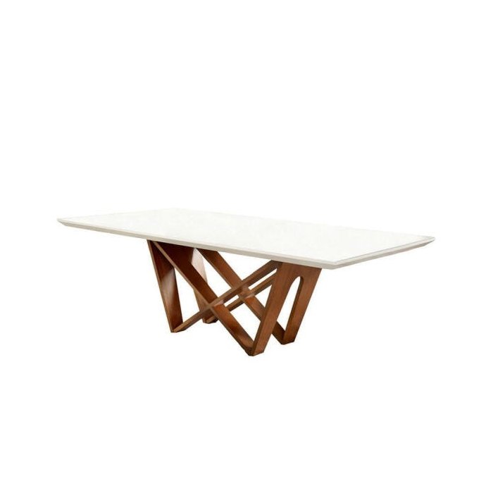 Mesa de Jantar Ajota com Base de Madeira e Tampo em Laca Cupuccino 220x110cm Off-White