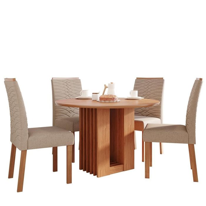 Mesa de Jantar Ariela 109cm com Tampo em Mdf e 4 Cadeiras Clarice Wood Cinamomo/madeira/linho Bege